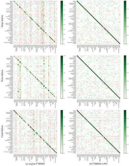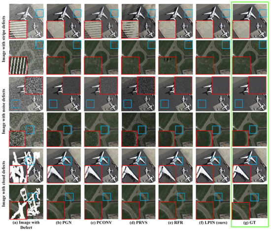 Meanwhile, we choose six existing RSISC methods and train them on the same training dataset. Then, the GT images and the images with defects are sent to each RSISC method, as well as the proposed methods which combine the LPIN with RSISC methods to test their classification accuracy, as shown in Figure 8.