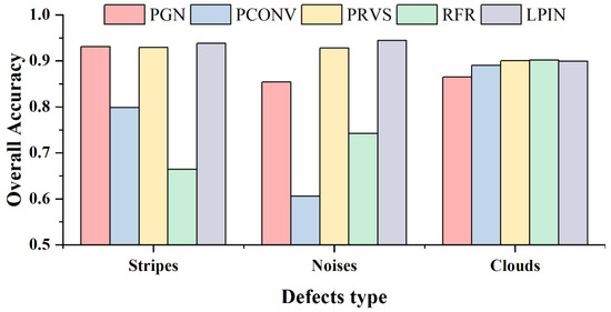 A variety of methods have been proposed to reduce the interference of defects in the defected images. For example, Li et al. [25] replaced several layers in the model with discrete wavelet transform. Duan et al. [26] designed image features that are insensitive to defects. Chen et al. [27] proposed a method to learn the statistical characteristics of defects and used image filters to separate the defects. Chen et al. [28] also adopted a spectral-spatial preprocessing algorithm to improve the performance of the hyperspectral RS image classification. However, these methods are mainly designed for enhancing the anti-defect capability of their models instead of eliminating defects. Various modules are adopted in the models to decrease interference of the defects, which leads to an increase in the complexity and training time of the model.