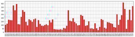 Additionally, the videos from relatively low and high altitudes were significantly differentiated. These sequences were taken by UAV in urban environments—mainly showing streets, crossroads, sidewalks, and large squares. Since crowds are dynamically scattered across video frames, each crowd is surrounded by different backgrounds with different levels of clutter. As a ground truth, the authors provide human head position coordinates for each image, with over 400 k annotations in total. All images were registered with the same resolution equal to 1920 × 1080, which, with the high altitude of the drone, makes it extremely challenging to extract features that describe the object.
