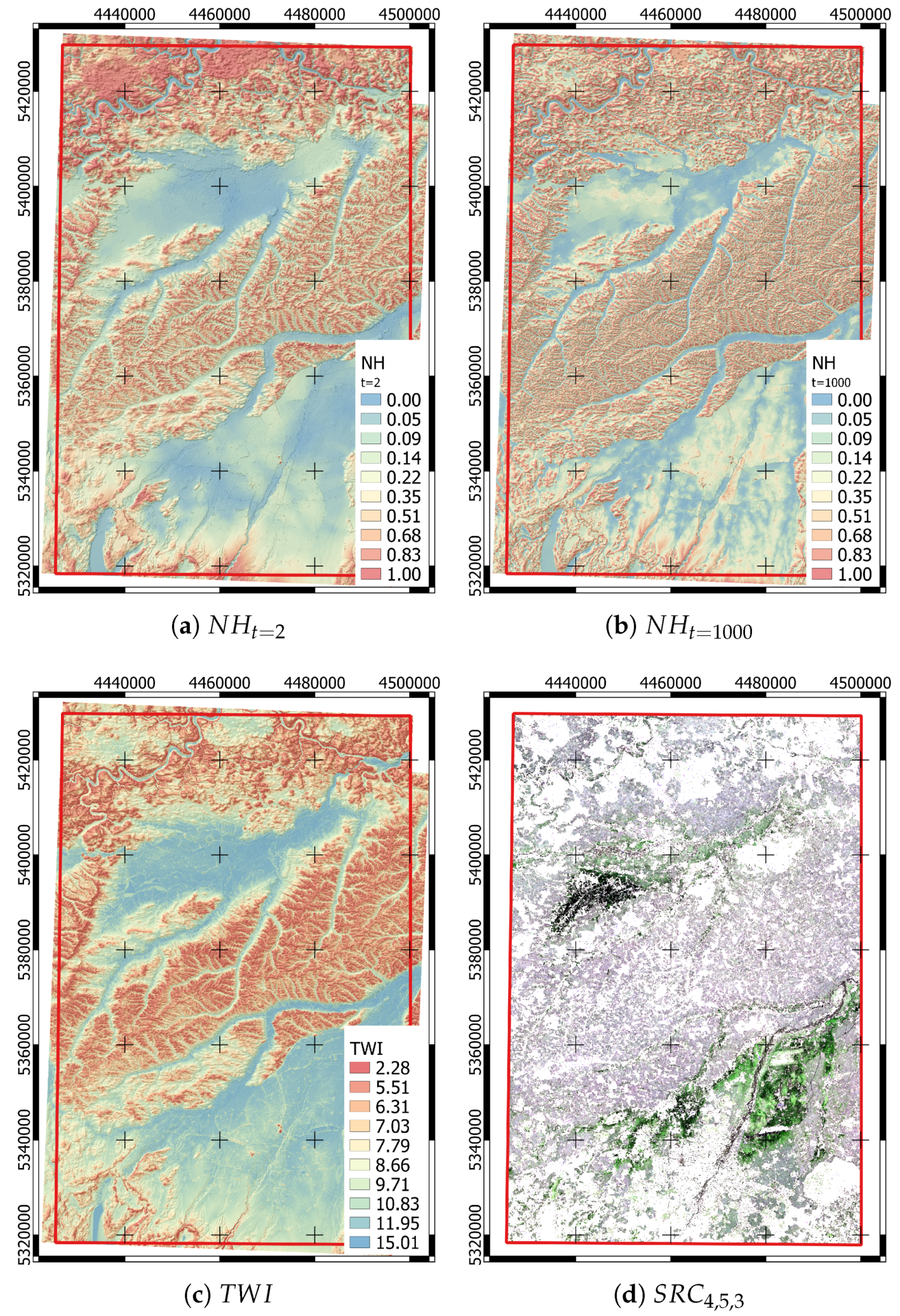 | Topographic Wetness Index | – | 1 | [44] | |
