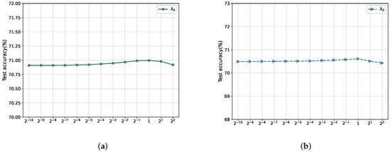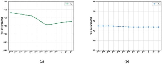 We carry out ablation studies to analyze the influence of the hyper-parameters , and . To determine the optimal parameters of the experiment more quickly, we fixed two of the parameters and then changed another parameter. The experimental results on NWPU-RESISC45 and RSD46-WHU under the 5-way 1-shot case are shown in Figure 7, Figure 8 and Figure 9. Finally, we choose the parameter with the best classification result as our final parameter.