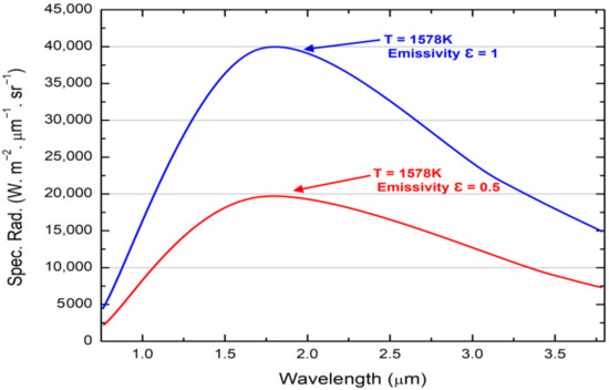 Responding to emissions at different wavelengths, observed flare flame spectra from the considered VIIRS NTL data allow a fitting to be performed by reproducing Planck curves and by varying two parameters, temperature and emissivity , which is defined as a maximum radiance ratio between a gray body and a black one (Figure 3).