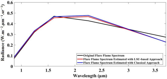Moreover, Figure 8 shows that the designed unmixing-based approach, unlike the tested classical approach, better extracts the flare flame spectrum, particularly in the spectral bands M7, M8 and M10.
