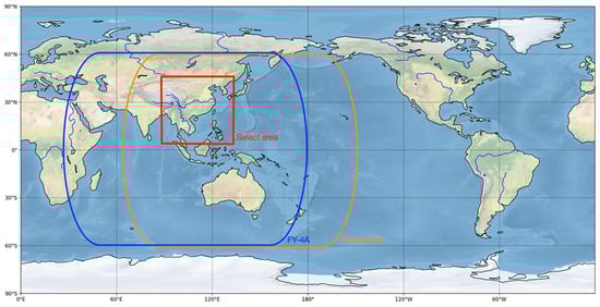 Observation areas of FY-4A and Himawari-8 satellites and experimentally selected areas.