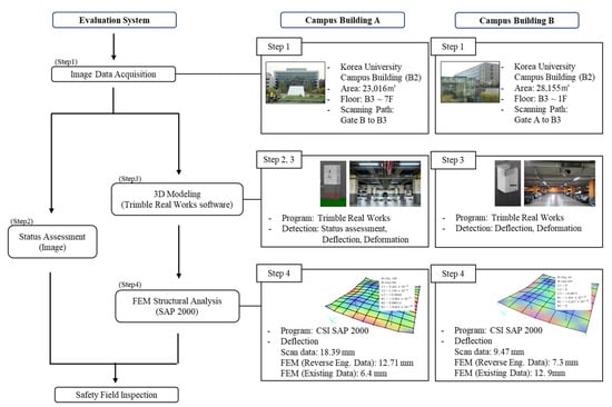 Summary of the evaluation system using 3D laser scanner applications (Campus Building A and B in Seoul).