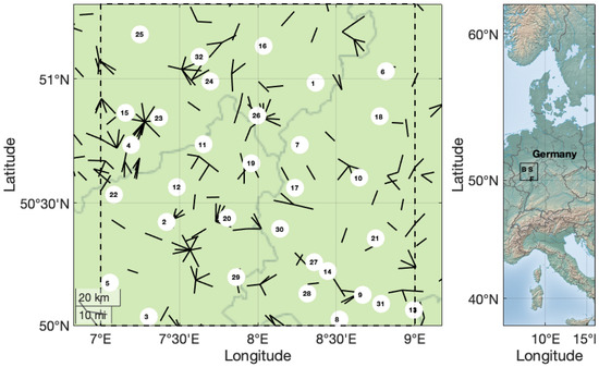 This study focuses on the region between the latitudes 50–51.3°N and the longitudes 7–9°E (the size of ~145 km × 220 km) (see Figure 1).