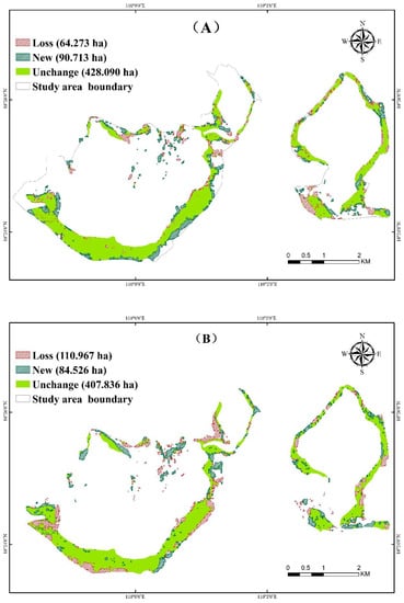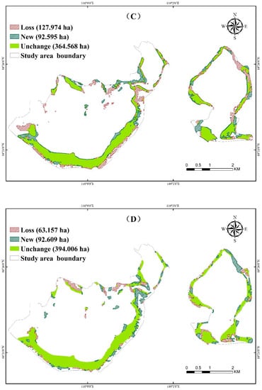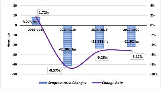 3.3. Mapping of Seagrass Distribution and Changes in the Study Area from 2016 to 2020 Based on Sentinel-2 Imagery