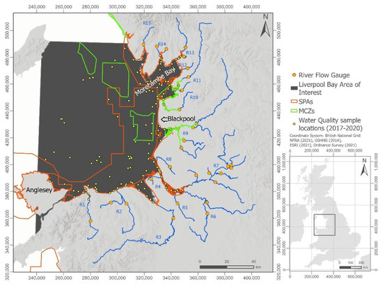 - Greenwood, N.; Hydes, D.J.; Mahaffey, C.; Wither, A.; Barry, J.; Sivyer, D.B.; Pearce, D.J.; Hartman, S.E.; Andres, O.; Lees, H.E. Spatial and Temporal Variability in Nutrient Concentrations in Liverpool Bay, a Temperate Latitude Region of Freshwater Influence. Ocean Dyn. 2011, 61, 2181–2199. [Google Scholar] [CrossRef]