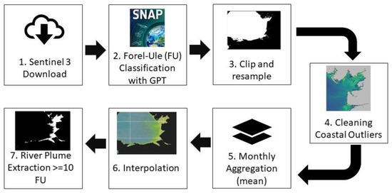 - Petus, C.; Waterhouse, J.; Lewis, S.; Vacher, M.; Tracey, D.; Devlin, M. A Flood of Information: Using Sentinel-3 Water Colour Products to Assure Continuity in the Monitoring of Water Quality Trends in the Great Barrier Reef (Australia). J. Environ. Manag. 2019, 248, 109255. [Google Scholar] [CrossRef]