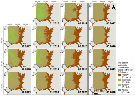- Petus, C.; da Silva, E.T.; Devlin, M.; Wenger, A.S.; Álvarez-Romero, J.G. Using MODIS Data for Mapping of Water Types within River Plumes in the Great Barrier Reef, Australia: Towards the Production of River Plume Risk Maps for Reef and Seagrass Ecosystems. J. Environ. Manag. 2014, 137, 163–177. [Google Scholar] [CrossRef] [Green Version]