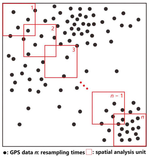 When using spatiotemporal travel data to assess urban problems, the selection of the most appropriate spatiotemporal analysis unit is complex. Because people’s movements in urban spaces are influenced by their daily activities at different times and are unevenly distributed, it is necessary to explore the relationships between the spatiotemporal processes that influence people’s activities and the spatiotemporal phenomena of interest [