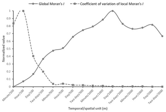 24]. That is, the temporal unit considered influences the spatial analysis results. Therefore, the determination of the best temporal unit should be considered in conjunction with that of the optimal spatial unit.