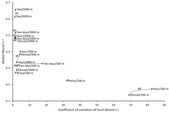 19]. Similarly, Chou discussed the possible relationship between map resolution and Moran’s