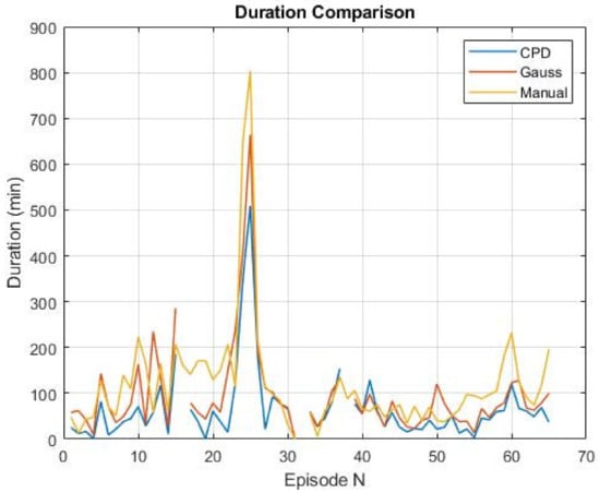 As regards to the duration D for each episode, the comparison between the automated and the manual estimation is shown in Figure 13.