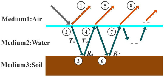 , which represented the energy reached to the water–soil interface at the second time, where r12 was the reflectance of the water–air interface, which can be calculated by integrating the reflectivity over the entire hemisphere based the method of the Stern.
