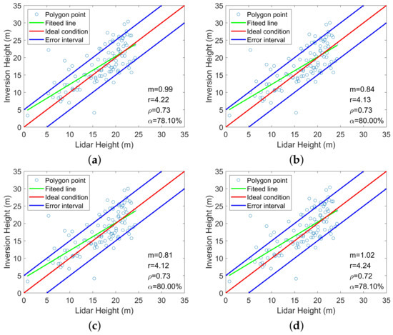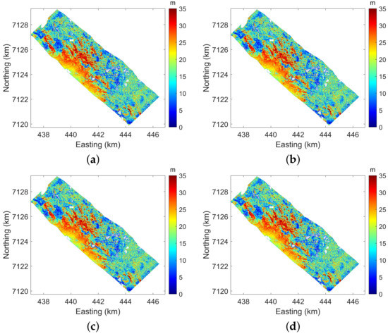 - Liao, Z.; He, B.; Bai, X.; Quan, X. Improving forest height retrieval by reducing the ambiguity of volume-only coherence using multi-baseline PolInSAR data. IEEE Trans. Geosci. Remote Sens. 2019, 57, 8853–8866. [Google Scholar] [CrossRef]