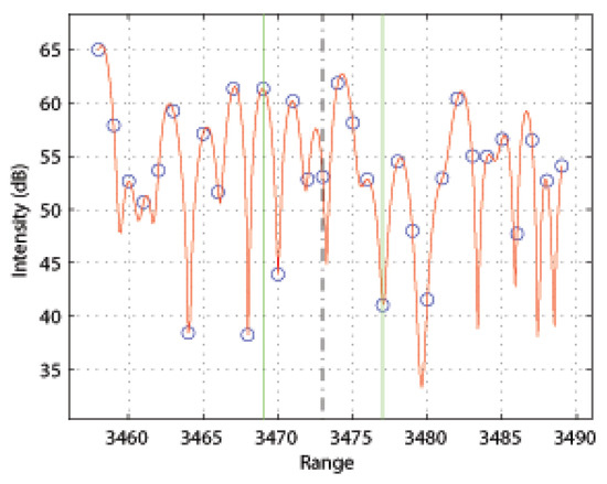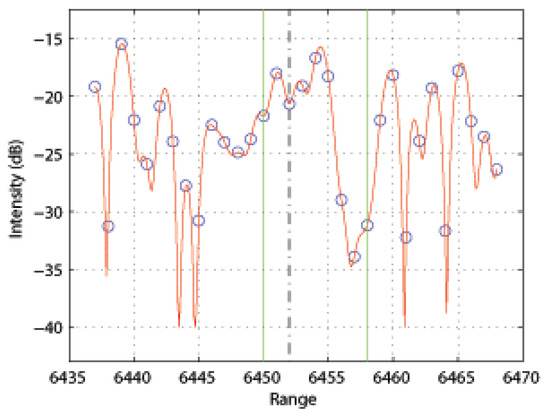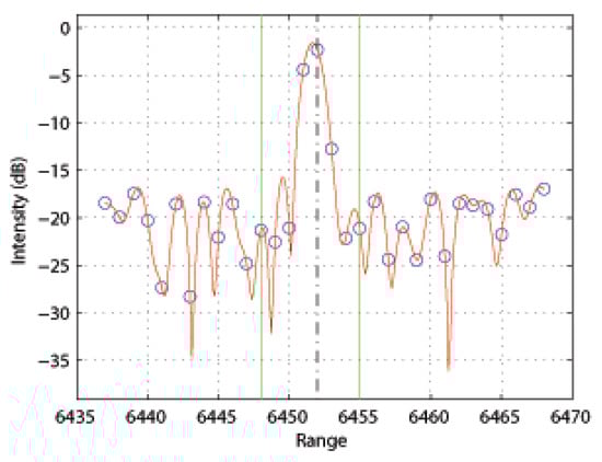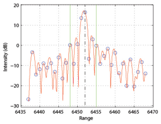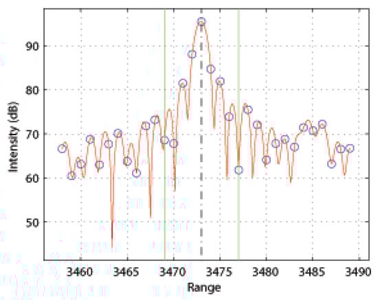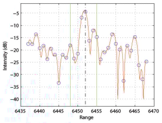 Corner reflector reflector HH response (in range expressed in pixel numbers).