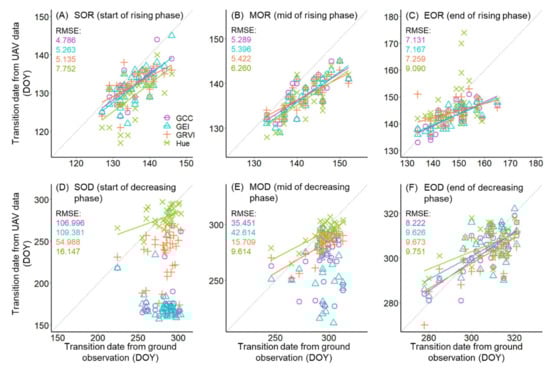 3.1. Leaf Phenology Derived from Ground Observation and UAV Imagery