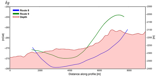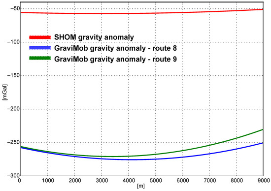A recent experiment of gravity measurement onboard an unmanned underwater vehicle (UUV) and using a strapdown sensor was carried out by a Chinese team in Mulan Lake, Wuhan City, Hubei Province, China [20]. The survey was carried out using a small UUV BQR800 (1.55 m in length, 0.87 m in width, 0.81 m in height) remotely operated at a depth of 8 to 20 m along a 6 km profile. The gravity measurements were delivered by a dg-M shipborne strapdown gravimeter of 1 mGal accuracy developed by Hunan INS Technology Co., Ltd. Submersible positioning and orientation were ensured by a set of positioning sensors consisting of an inertial navigation system, a short baseline acoustic system, (accuracy: 1 m at 100 m distance) an ultrasonic Doppler velocimeter (accuracy: 0.1 cm/s) and a depth gauge (accuracy: 2 mm). According to the Chinese team’s findings, based on the analysis of six repeated surface and underwater profiles, the accuracy of the system reached 0.42 mGal. These results tend to demonstrate the feasibility of mobile underwater gravimetry only in lakes and need to be confirmed in the underwater environment at greater depths, where navigation conditions are more difficult.
