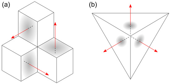 In practice, the signals delivered by each triad of accelerometers consist of three electrical voltages, which are also affected by biases, i.e., offset voltages even when the sensors are not accelerated. Let be the column vector whose components correspond to the three electrical voltages measured in the triad . The following reasoning will remain valid in all respects for the triad . Assuming a linear response of the accelerometers, the relationship that relates this vector to the specific force may be expressed as: