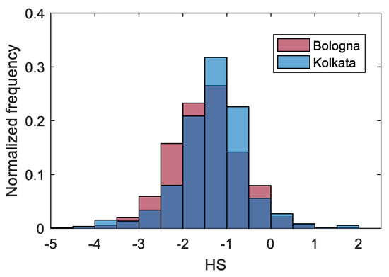 Distribution of HS values in natural rain of Bologna and Kolkata.