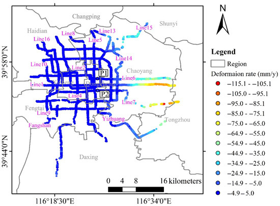 Deformation rates along Beijing subway lines.