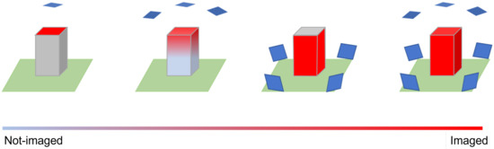 Airborne platforms provide the most pertinent data for roof modelling, building footprint detection (oblique images), showcasing streets and mapping the locations of open spaces. However, the capabilities of airborne platforms for detailed 3D elevation modelling are limited. This is largely due to the downward-facing (nadir) viewing perspective offered by most sensors that are mounted to airborne platforms. Alternative solutions to mapping façades from airborne platforms include the use of sensors (e.g., cameras) that provide an oblique viewing perspective [59,60,61] or unmanned aerial vehicles [62].