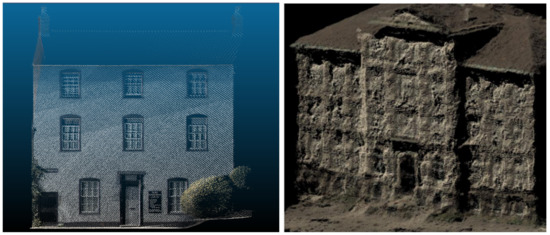 An example of point cloud from terrestrial laser scanning (left, source OS © Crown copyright and database rights 2022 OS and dense multi-stereo matching from oblique aerial imagery (right, reprinted with permission from Ref. [82]).
