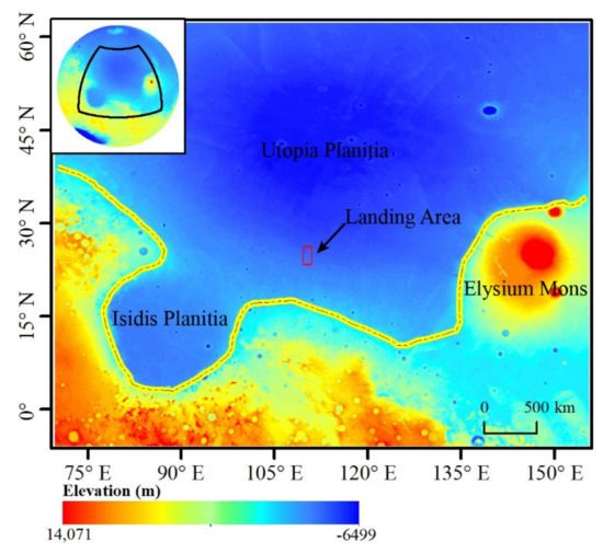 - Wu, X.; Liu, Y.; Zhang, C.; Wu, Y.; Zhang, F.; Du, J.; Liu, Z.; Xing, Y.; Xu, R.; He, Z.; et al. Geological Characteristics of China’s Tianwen-1 Landing Site at Utopia Planitia, Mars. Icarus 2021, 370, 114657. [Google Scholar] [CrossRef]