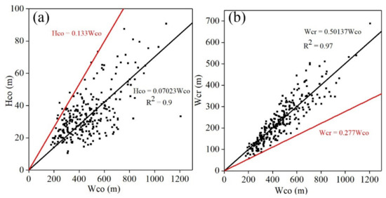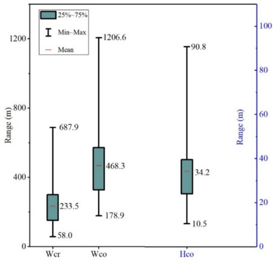 | Feature Type | N | Hco Range (Average) (m) | Wco Range (Average) (m) | Hco/Wco Range (Average) |
