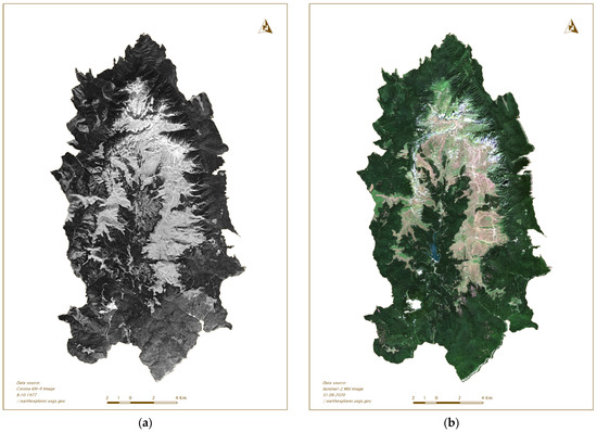 - Nita, M.D.; Munteanu, C.; Gutman, G.; Abrudan, I.V.; Radeloff, V.C. Widespread forest cutting in the aftermath of World War II captured by broad-scale historical Corona spy satellite photography. Remote Sens. Environ. 2018, 204, 322–332. [Google Scholar] [CrossRef]