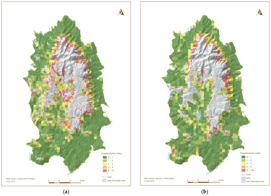 - Gounaridis, D.; Zaimes, G.; Koukoulas, S. Quantifying spatio-temporal patterns of forest fragmentation in Hymettus Mountain, Greece. Comput. Environ. Urban Syst. 2014, 46, 35–44. [Google Scholar] [CrossRef]
