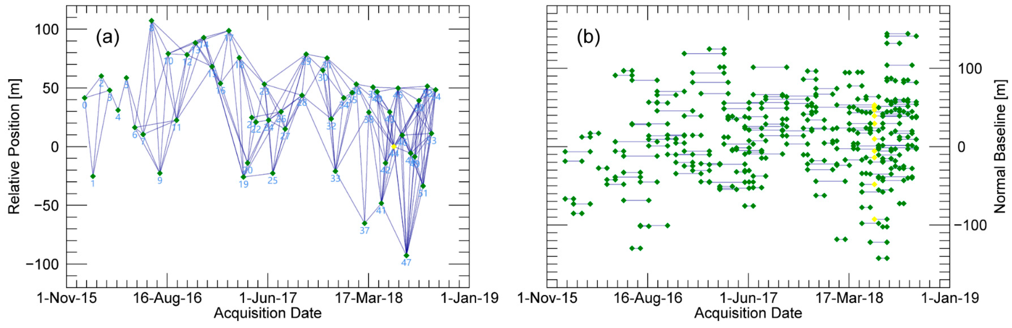 - Pepe, A.; Berardino, P.; Bonano, M.; Euillades, L.D.; Lanari, R.; Sansosti, E. SBAS-based satellite orbit correction for the generation of DInSAR time-series: Application to RADARSAT-1 data. IEEE Trans. Geosci. Remote Sens. 2011, 49, 5150–5165. [Google Scholar] [CrossRef]