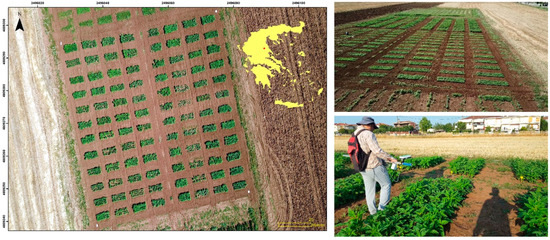 Field experiments were conducted in 2020 and 2021 at the Institute of Industrial and Forage Crops (IIFC) of the Hellenic Agricultural Organization—DIMITRA (ELGO-DIMITRA) in Larissa (x: 2496060, y: 4809270, Projected Coordinate Systems WGS_1984_Web_Mercator), central Greece (Figure 2). The climate in the region of Larissa is a semi-arid Mediterranean climate and is classified as Csa (temperate climate with a hot-dry summer) by the Köppen–Geiger system [52].