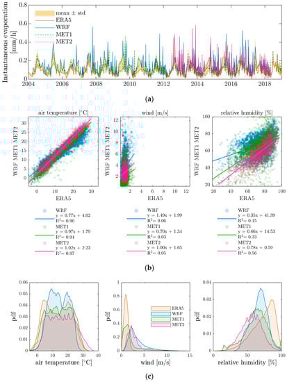 The sets listed as items 5 and 6 in the above list were also used for the additional analysis of the sensitivity of evaporation estimates to variations of the different atmospheric quantities. The results of this analysis are reported in Supplementary Material S2.