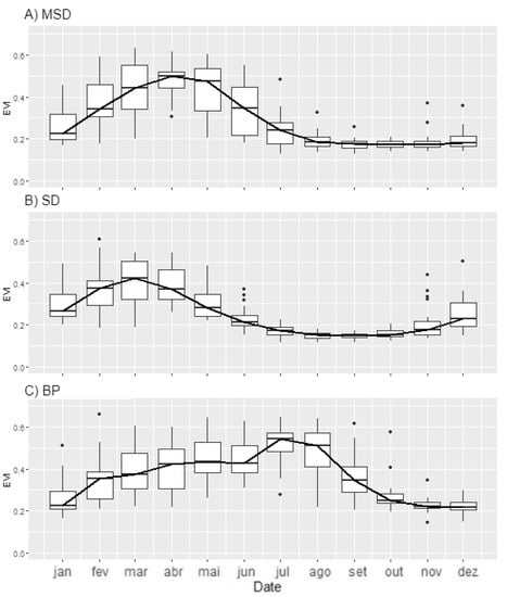 - Brando, P.M.; Goetz, S.J.; Baccini, A.; Nepstad, D.C.; Beck, P.S.A.; Christman, M.C. Seasonal and interannual variability of climate and vegetation indices across the Amazon. Proc. Natl. Acad. Sci. USA 2010, 107, 14685–14690. [Google Scholar] [CrossRef]