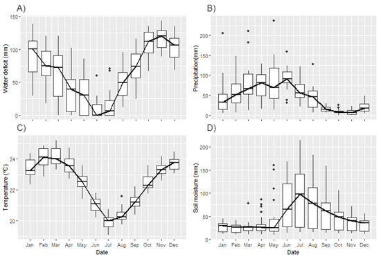 - Allen, K.; Dupuy, J.M.; Gei, M.G.; Hulshof, C.; Medvigy, D.; Pizano, C.; Salgado-Negret, B.; Smith, C.M.; Trierweiler, A.; Van Bloem, S.J.; et al. Will seasonally dry tropical forests be sensitive or resistant to future changes in rainfall regimes? Environ. Res. Lett. 2017, 12, 023001. [Google Scholar] [CrossRef]