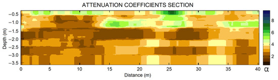 Example of a section showing the variation in attenuation coefficient values obtained from GPR profile.