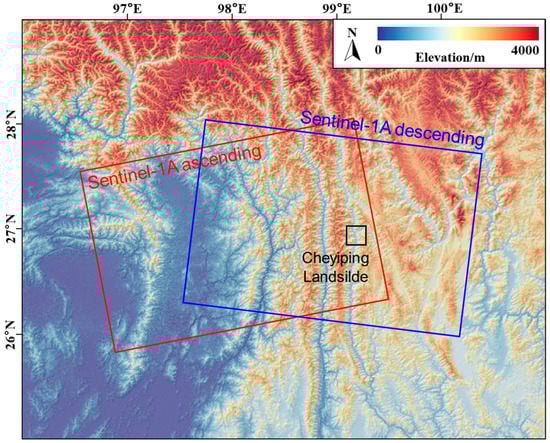 A total of 73 SAR images acquired by Sentinal-1 were freely accessible through the European Space Agency (ESA) Sentinel science hub to monitor the surface deformation of the Cheyiping landslide using the time-series InSAR technique. Specifically, the datasets were collected from both ascending and descending orbits in order to overcome the limitations of the single track SAR data and SAR imaging geometry [54]. The spatial coverage of the SAR datasets can be found in Figure 4. The basic parameters of SAR data are reported in Table 1. Furthermore, Precise Orbit Data (POD) of ESA was used to correct the orbit error of sentinel-1A data. The 30 m resolution digital elevation model of the Shuttle Radar Topography Mission was used to remove topographic phase contribution and geocoding.