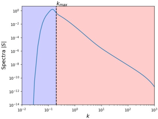 Splitting of the Elfouhaily spectrum. The red and blue parts correspond to the high and low roughness parts, respectively.
