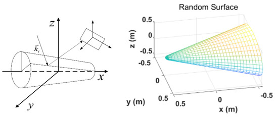 Target coordinate system and surface element coordinate system of a rough cone model.