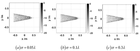 The ISAL imaging in Figure 4 can clearly distinguish the shape of the blunt-nosed cone, which proves that ISAL imaging can clearly distinguish the shape of the rough blunt-nosed cone at a small rotation angle (10°). When the root mean square height was increased and the surface of the blunt-nosed cone was rougher, the scattering components mainly came from incoherent scattering, and the imaging effect of the blunt-nosed cone was more uniform.