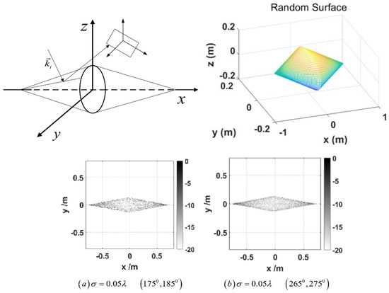 where . is the distance between the center of the exposure surface and the observation point. Subscripts and represent the polarization states of the incident wave and the scattered wave, respectively; is the wave number, and is the wavelength. is the amplitude of the incident light wave, and this paper takes unit amplitude . is the polarization coefficient [22], and and are the slope directions of the expressed height fluctuations.