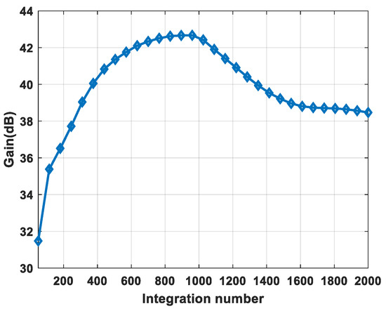 Noncoherent integration is a nonlinear process, in which the SNR is improved by ~ times theoretically. With the increase in the number of integration pulses, the SNR improvement gain of noncoherent integration progressively decays to times, theoretically [49], and the effect will suffer a major setback when coherent integration is further used for processing. As shown in Figure 1, in contrast to the case in which the integration pulse count is proportional to the integration gain when the echo is completely correlated, the maximum coherent integration gain cannot be achieved through the coherence of all pulses, whereas integration is performed for a partially coherent target echo. The maximum integration gain is impossible to achieve without matching the integration time with the echo decorrelation time.