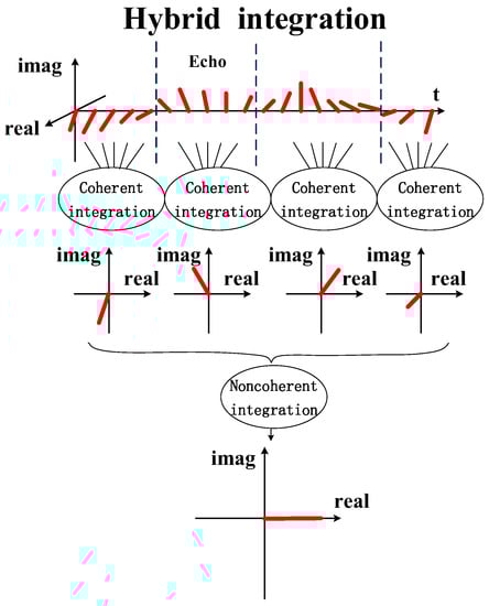 Therefore, to maximize the integration gain during integration for a target that is partially coherent with the echo, the coherent-noncoherent hybrid integration approach should be employed, as shown in Figure 2. In this approach, the whole integration time is divided into several coherent integration segments, within which coherent integration is adopted in coherent integration segments while the noncoherent integration method is employed to reintegrate the energy within the coherent integration segments. Thus, by combining both integration methods, the echo SNR is improved to the greatest extent.
