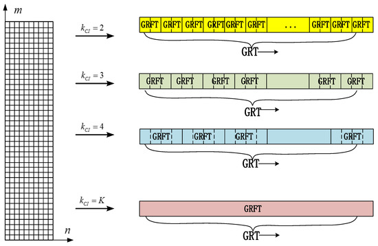 The GRFT is used for coherent integration. Assuming that the total integration time is divided into coherent integration segments, the number of pulses in each segment can be expressed as: