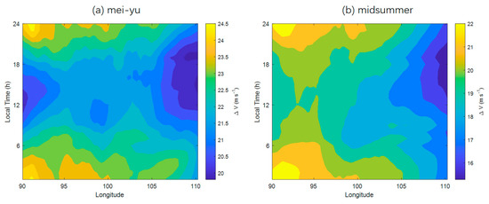 Diurnal variation in during the (a) mei-yu and (b) midsummer periods.
