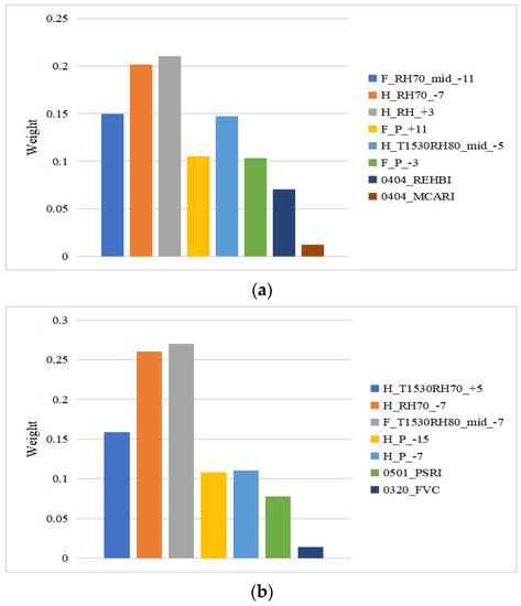 We found that the weights of meteorological factors were generally larger than those of the remote sensing-based factors on 29 April 2021 and 10 May 2021, and the weights of the meteorological factors related to humidity were larger than those of the remaining meteorological factors. Thus, the weight of disease prediction factors expresses the mechanism of disease occurrence.