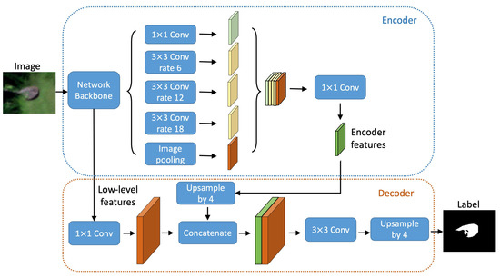 - Chen, L.C.; Zhu, Y.; Papandreou, G.; Schroff, F.; Adam, H. Encoder-Decoder with Atrous Separable Convolution for Semantic Image Segmentation. In Proceedings of the European Conference on Computer Vision (ECCV), Munich, Germany, 8–14 September 2018; pp. 801–818. [Google Scholar]