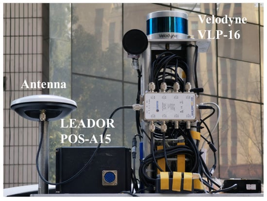 The data collection setup includes a quasi-navigation-level INS (Inertial Navigation System) LEADOR POS-A15 with a gyroscope bias stability of 0.027°/h and accelerometer bias stability of 15 mGal. The GNSS RTK is also provided in the form of the positioning results. This equipment is mounted on a Haval H6 SUV with a height of approximately 1.7 m. The extended Kalman filter is utilized to obtain the reference trajectory at the centimeter level by fusing the high-level INS and RTK data. The setup of the data collection system is shown in Figure 8.
